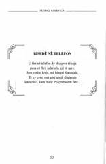 PETRAQ KOLEVICA BISEDE NE TELEFON U flet në telefon dy shoqeve të saja posa zë flet, ia krisën një të qare: Jam vetëm krejt, më hëngri Kanadaja. Te ky qytet nuk gjej asnjë shqiptare kam mall, kam mall! Po çmendem fare. 50